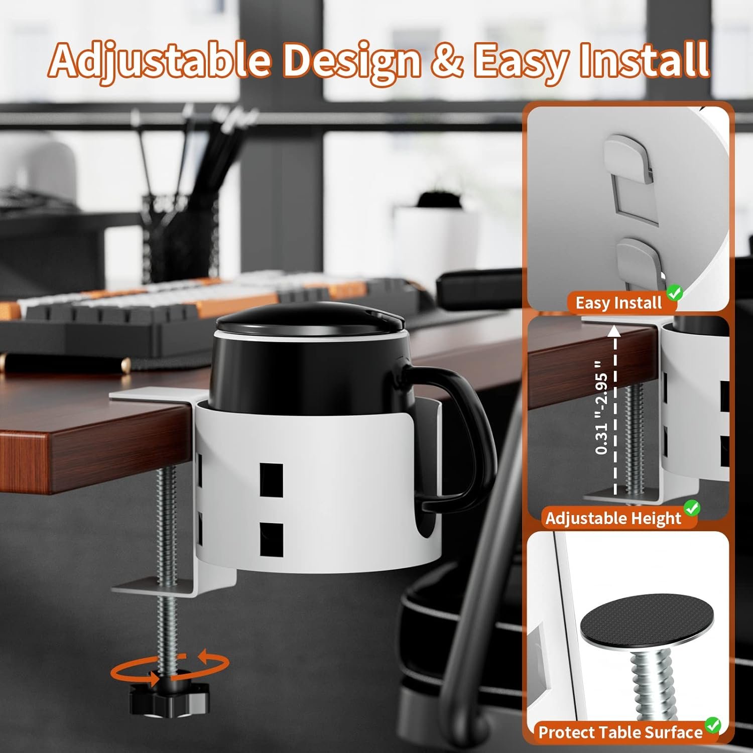 Keep your workspace organized and spill-free with this upgraded desk cup holder clamp. Designed for durability and versatility, it securely holds your beverages, preventing spills and saving valuable desk space.